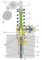 Пьезоэлектрический клапан пришел на смену электромагнитному клапану. Пьезоэлектрический клапан обладает большим быстродействием. Основным конструктивным элементом клапана является игла клапана.